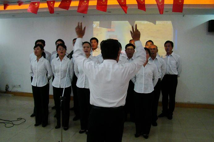 9月25日 ,恒橋公司慶建國六十周年紅歌會在物貿(mào)大賽會議室舉行,各支部用演唱革命歌曲來慶祝即將來到的建國六十周年。