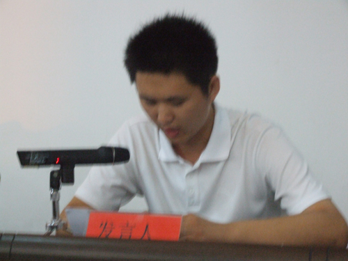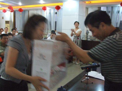 6月30日,公司員工濟濟一堂于物貿(mào)五樓會議室,參加了一場別開生面的“歡樂世博行感想交流會”。會議由綜合部經(jīng)理宋宏主持,公司領(lǐng)導(dǎo)姬總、畢總、原總參加了會議。 會上,15位同事代表三個支部登臺演講,聲情并茂,文采飛揚,場面精彩紛呈。經(jīng)過激烈的角逐,李楠以一篇《學(xué)習(xí)世博**服務(wù),爭做**商管員》摘得一等獎。許雯婧,許娜獲得二等獎。馬健、李新新、李朝朝獲得三等獎。