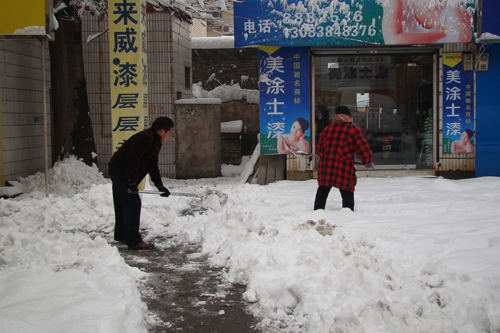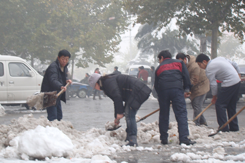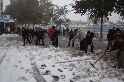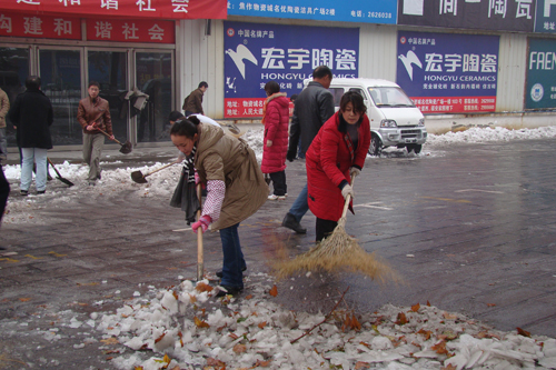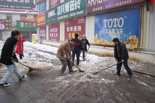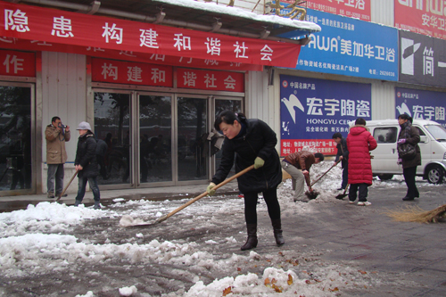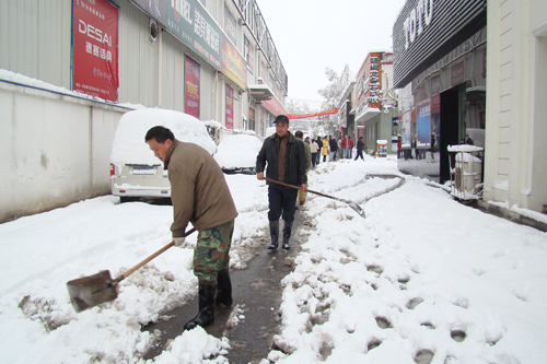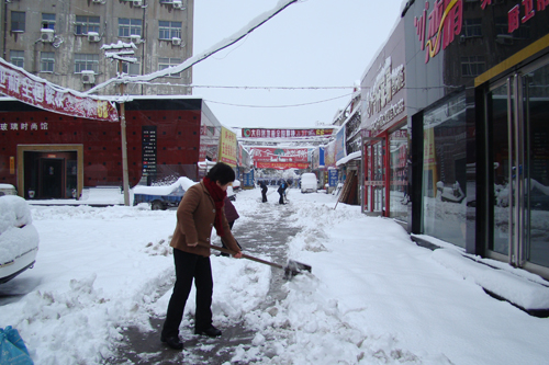 11月11日的一場多年不遇的大雪,壓彎了樹梢,堵塞了道路。12日早晨,公司領(lǐng)導(dǎo)現(xiàn)場查看了物資城的雪情,要求商管員逐戶告知商戶注意安全,組織人員清掃道路積雪,做好雪后經(jīng)營的準備工作。
