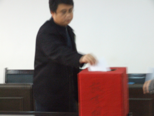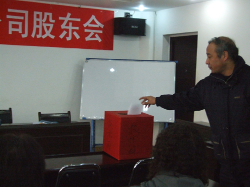 11月27日9時(shí),公司物貿(mào)大廈五樓會(huì)議室召開股東會(huì),選舉第三屆董事會(huì)、監(jiān)事會(huì)。公司股東代表除有一名請(qǐng)假外,其余全部到會(huì)。大會(huì)由**屆董事會(huì)聘任的常務(wù)副總經(jīng)理李建軍主持。