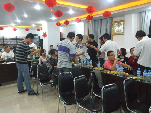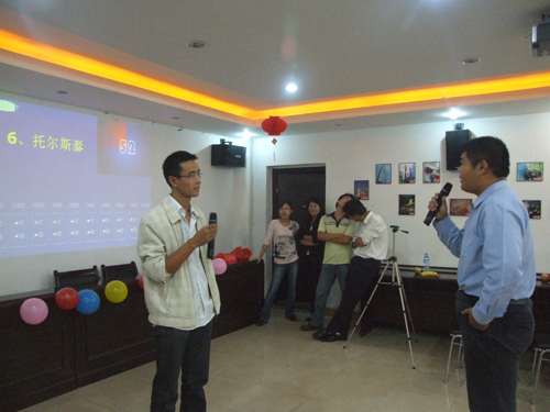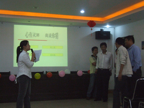 聯(lián)歡會在歡快的樂曲聲中拉開了帷幕,首先由綜合部宋宏經(jīng)理致辭,向大家致以節(jié)日的問候,接著伴隨著湯艷芬的《蘇州河》這首歌曲,聯(lián)歡會正式開始。“我說你猜、搶話筒、猜謎”等小游戲貫穿于聯(lián)歡會中間,將現(xiàn)場氣氛一次次推向高潮。掌聲、笑聲、歡呼聲此起彼伏,處處洋溢著濃濃的節(jié)日氣氛,伴隨著《明月幾時有》優(yōu)美的旋律,聯(lián)歡會接近了尾聲,大家起身相互祝愿,相約明年再相聚。